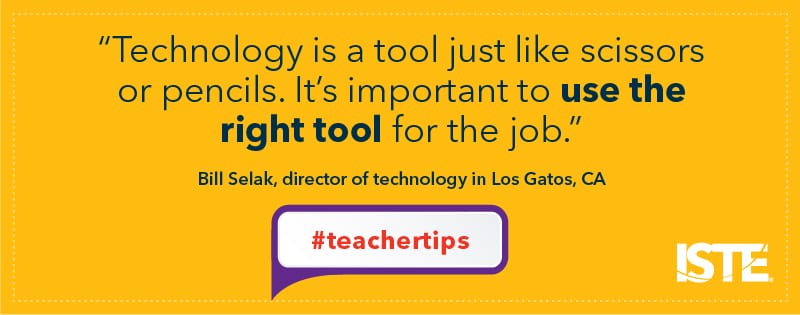 Balance is everything, and the teachers who can figure this out will have long-term success. “Technology is a tool just like scissors or pencils. It’s important to use the right tool for the job. You have powerful devices, and they have a time and place, but you don’t have to use them all the time,” says Selak. #techieteacher