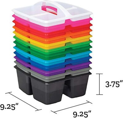 Keep 5th grade classroom supplies organized with durable plastic caddies.