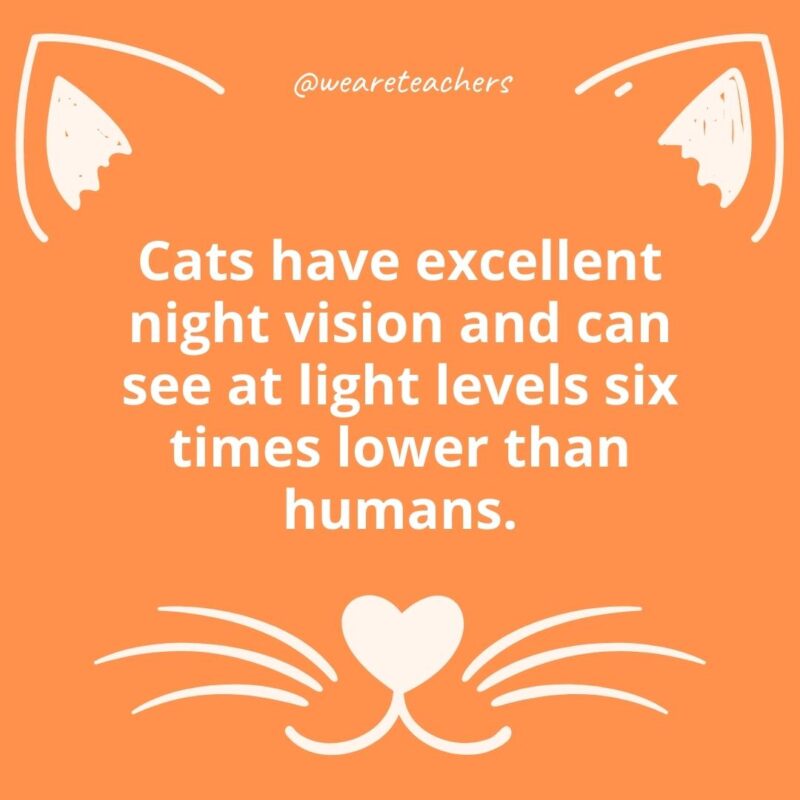 22. Cats have excellent night vision and can see at light levels six times lower than humans.