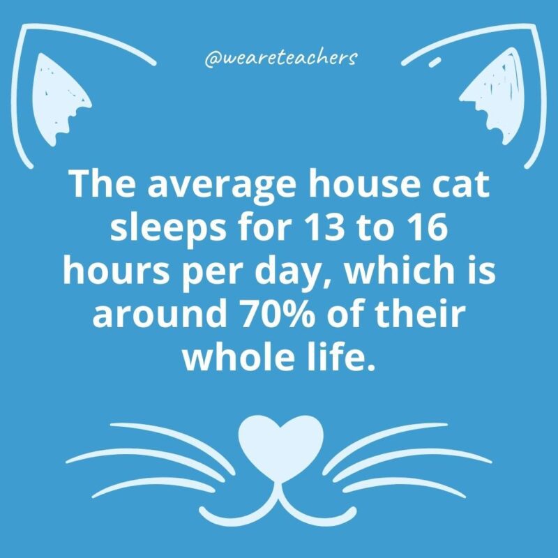 5. The average house cat sleeps for 13 to 16 hours per day, which is around 70% of their whole life.