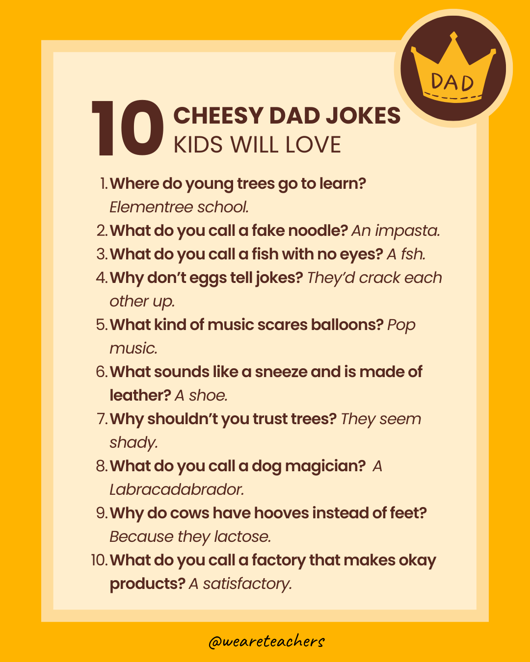 Come share your best dad jokes for kids in our We Are Teachers HELPLINE group on Facebook.