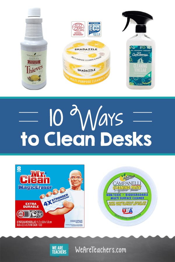 Teachers in our WeAreTeachers Deals group on Facebook also swear by nail polish remover, spray-on sunscreen, hairspray, and Expo markers for cleaning dirty desks! Come join us to see and share your own recommendations.