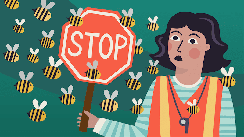 Once, a huge swarm of bees came out of nowhere to form a dark cloud (probably like 500+) and swooped down to the car pick up line. We screamed and rushed all of the students back into the building, but the teacher who was directing traffic was stuck and had to just freeze perfectly still with her stop sign until the swarm flew away. Thankfully, no one was stung! —Tara B.