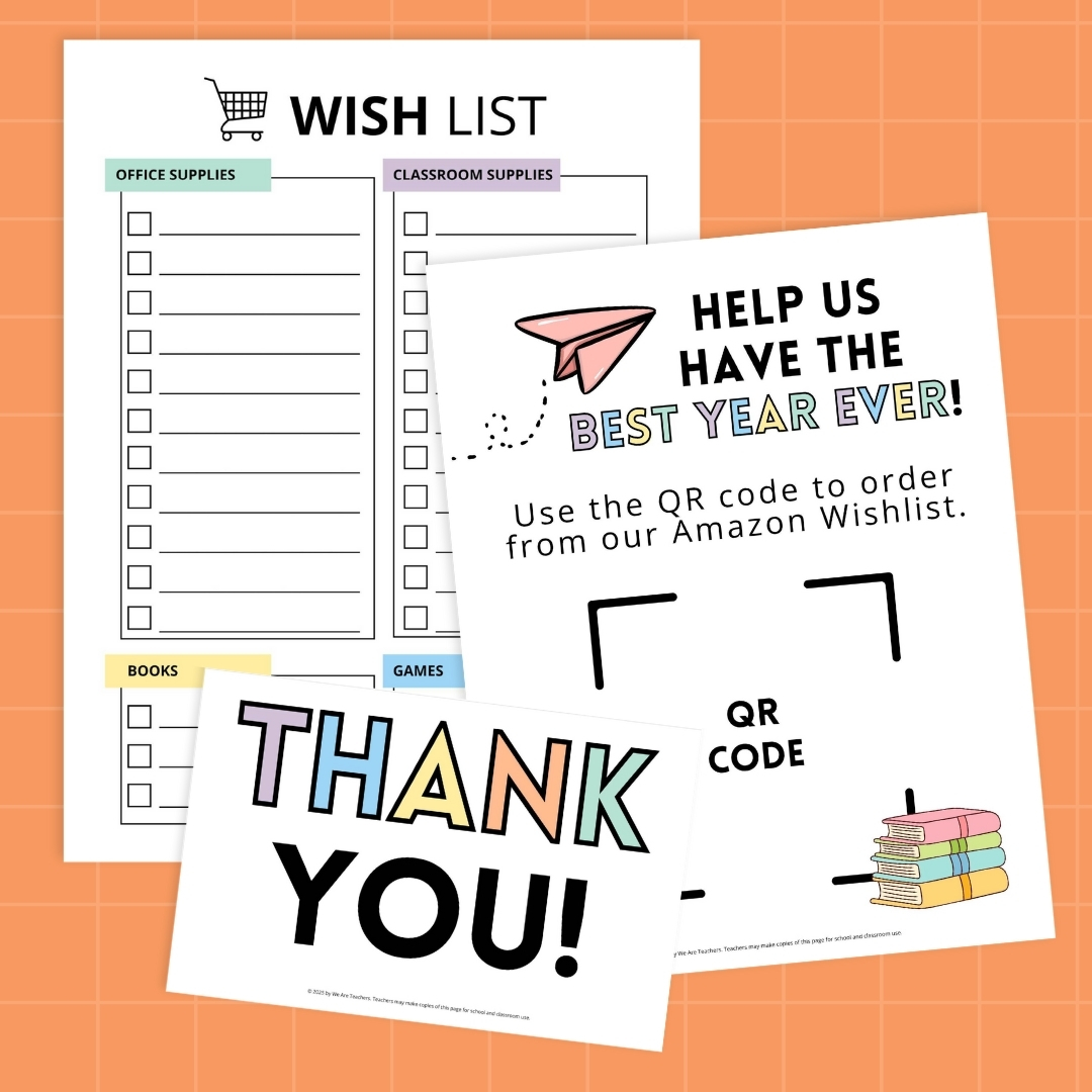 Make it easy to ask your community for the support your classroom needs. Our free printables help you organize your list, spread the word, and thank your donors! Just click the button below to get yours!