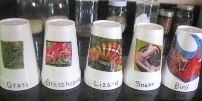 There are few things kids love more than snacks. Create scrumptious five-part food chains with things kids love to eat. You can use a yellow potato chip for the sun, pretzel sticks for grass, a bunny cracker or goldfish cracker for an herbivore, a teddy graham for the carnivore, and chocolate cookie crumbs for the decomposer to represent dirt. You’re definitely going to want to have extra goodies on hand since kids will want to taste it all!