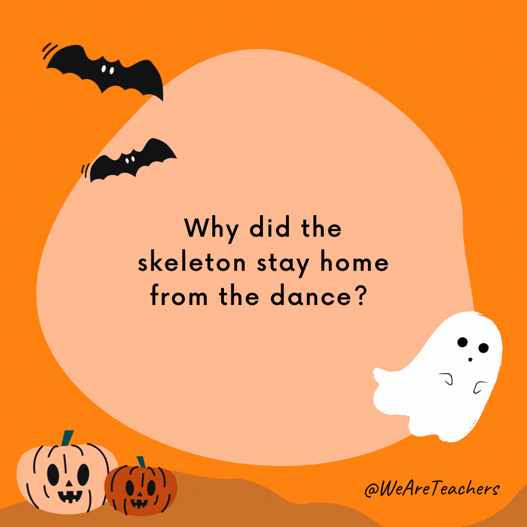 9. Why did the skeleton stay home from the dance?