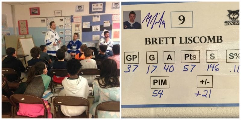 The Watertown Wolves have been very accommodating. We even make time at the end for autographs and pictures. This is a very special moment for my kids because it may be the only time they ever get to meet a professional athlete. And it’s special for me too. The Wolves Wall has become a centerpiece of my classroom, and of my students’ learning.