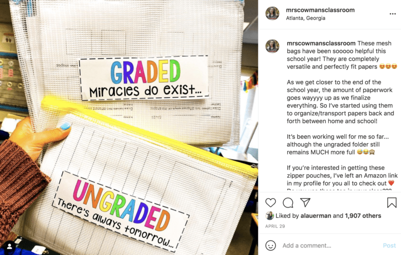 Keep things organized with mesh pouches for graded papers and ungraded papers. Use them for transporting papers to and from home or for staying organized in the classroom.