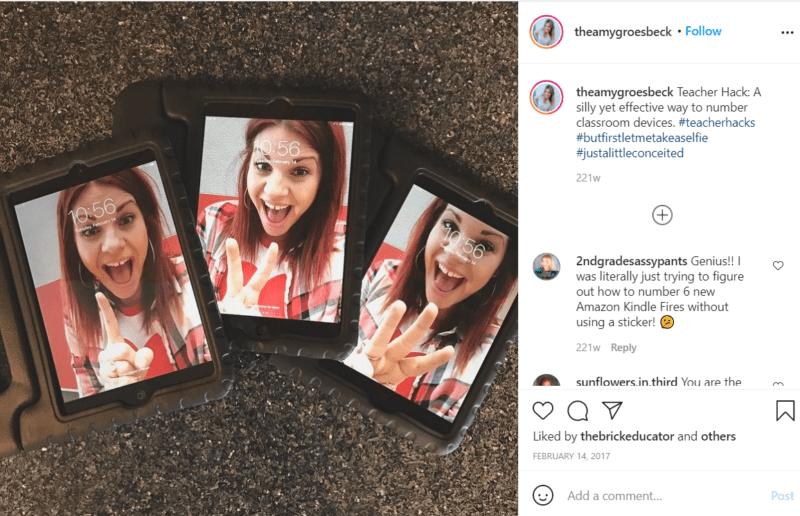 Save a silly photo of yourself holding up numbers or letters to identify which tablets are yours. This way you can avoid numbering devices with stickers that can leave residue.