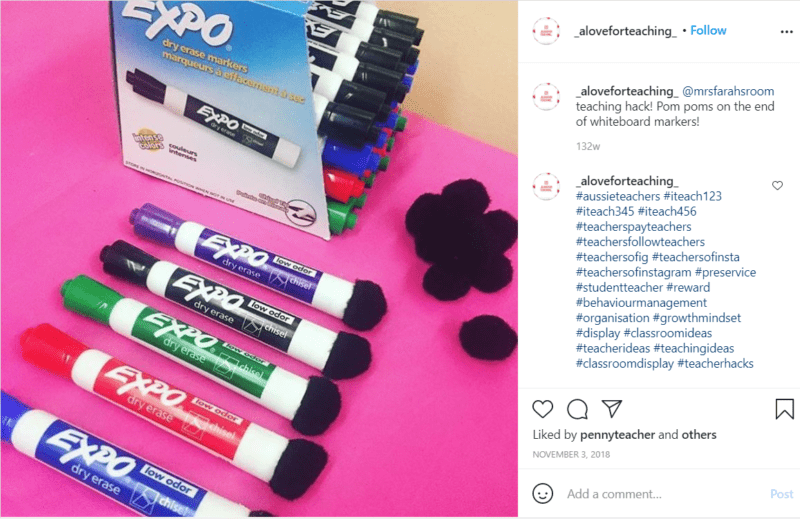 Socks make the perfect pocket to store students’ dry-erase markers! Plus, they are such an inexpensive solution for erasers. Lindsay W. shared that students “just slip the sock on their non-dominant hand, complete independent work, and using a sock makes erasing easy, useful, and a sufficient way to reuse a clothing item that typically loses its match anyway! Plus, students LOVE it—especially if they receive one of my own children’s fun socks!”