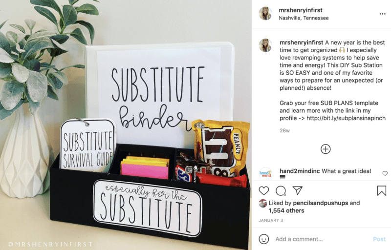You never know when you will have to call in a sub last-minute. Provide a binder and all the materials a sub will need. Having a sub-station ready on day one means you can relax when you need to take a day off.