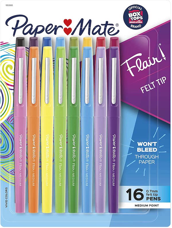Buy now: Paper Mate Flair Felt Tip Pens 16 Pack at Amazon | Paper Mate Flair Felt Tip Pens 6 Pack at Walmart