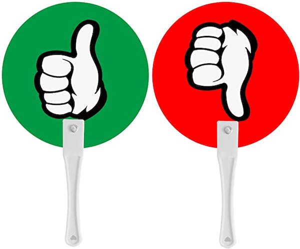 Buy now: Thumbs Up, Thumbs Down Paddles 24 Pack at Amazon | Thumbs Up, Thumbs Down Classroom Paddles 24 Packs at Oriental Trading
