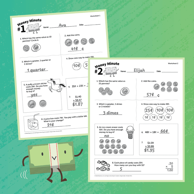 You’ve taught your money unit, but how do you get those skills to stick? With daily practice! But it seems like most “mad minute” worksheets are all about basic operations. So we created this bundle of five Money Minutes. Each day, the problems follow the same format but get progressively more challenging. Give them a try with your second and third graders!