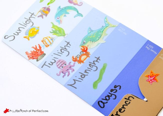 Grab a stack of blue shaded chips and get ready to learn the zones of the ocean! Kids can use stickers or draw the appropriate sea creatures for each level.