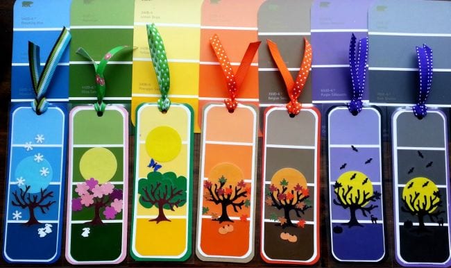 Take your bookmarks a step further by adding seasonal trees to match the color palette. We love the creative potential of these paint chip crafts!