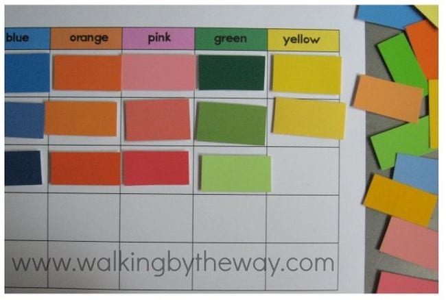 This idea is perfect for little ones learning their colors. Cut apart strips of different shades, then have kids sort them. This makes a perfect busy bag.