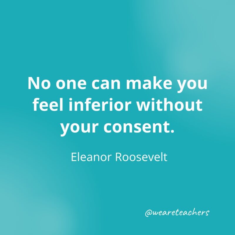 No one can make you feel inferior without your consent. —Eleanor Roosevelt