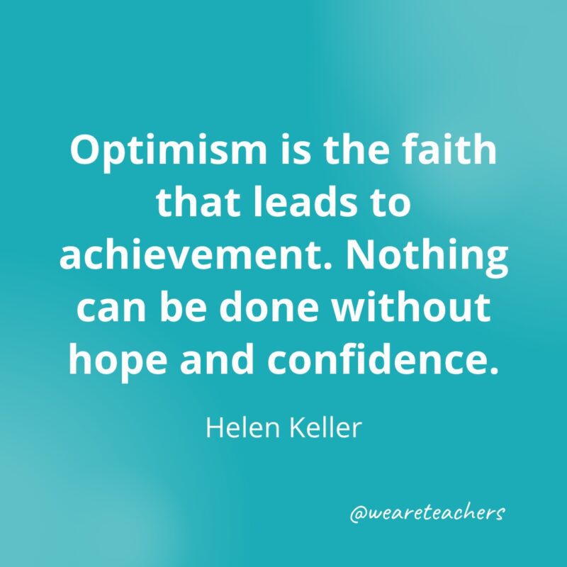Optimism is the faith that leads to achievement. Nothing can be done without hope and confidence. —Helen Keller