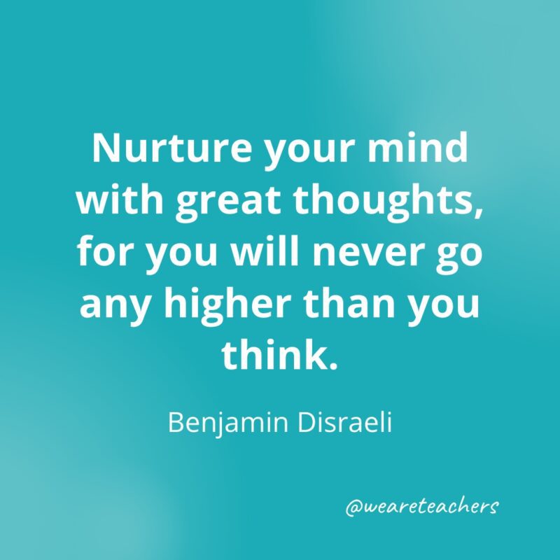 Nurture your mind with great thoughts, for you will never go any higher than you think. —Benjamin Disraeli