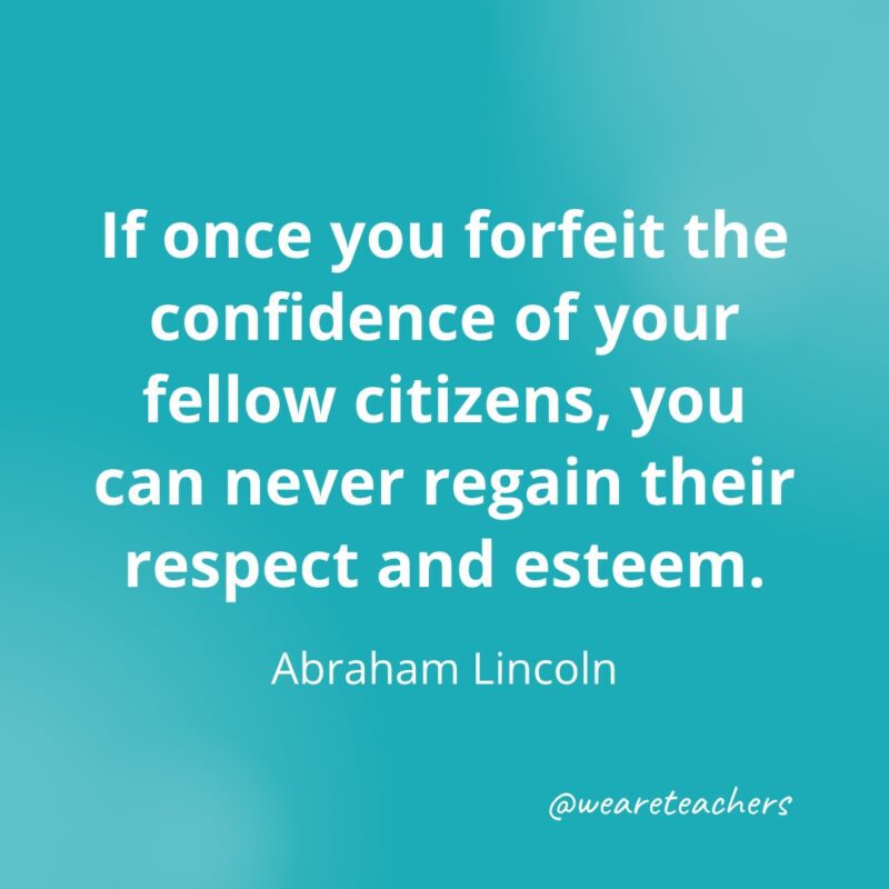 If once you forfeit the confidence of your fellow citizens, you can never regain their respect and esteem. —Abraham Lincoln