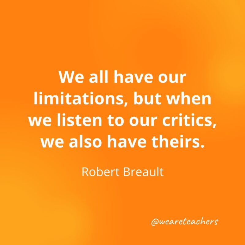 We all have our limitations, but when we listen to our critics, we also have theirs. —Robert Breault