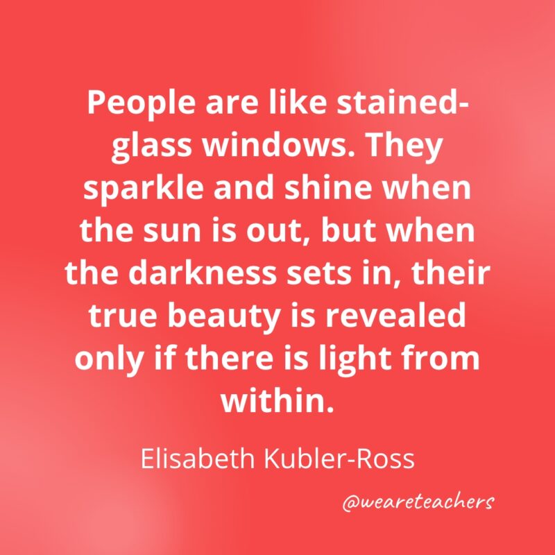 People are like stained-glass windows. They sparkle and shine when the sun is out, but when the darkness sets in, their true beauty is revealed only if there is light from within. —Elisabeth Kubler-Ross