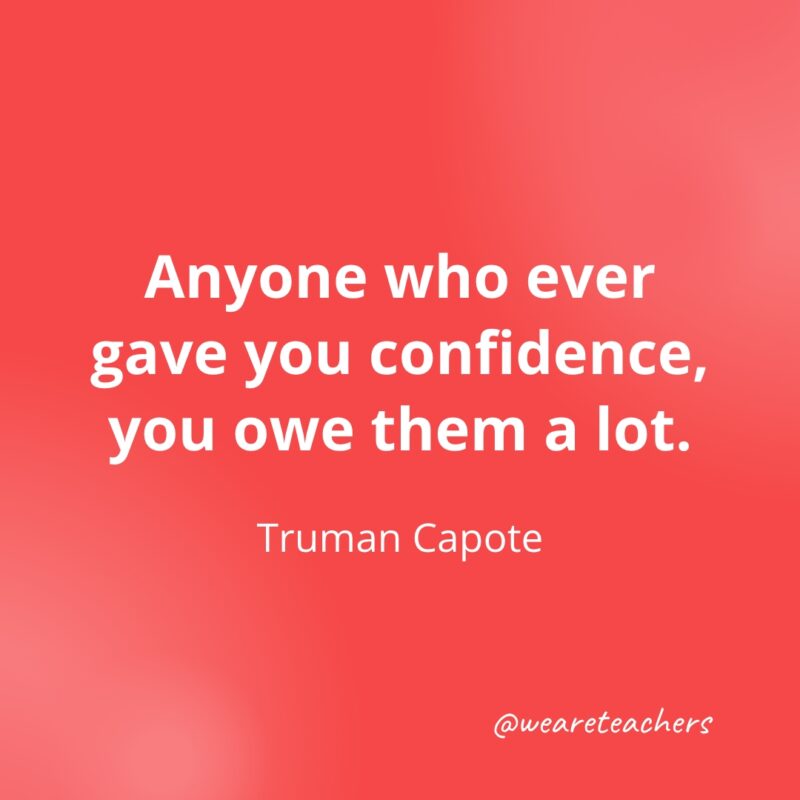 Anyone who ever gave you confidence, you owe them a lot. —Truman Capote