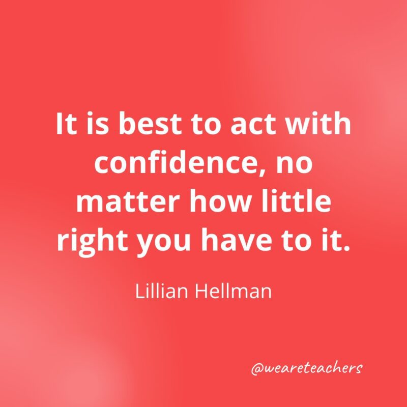 It is best to act with confidence, no matter how little right you have to it. —Lillian Hellman