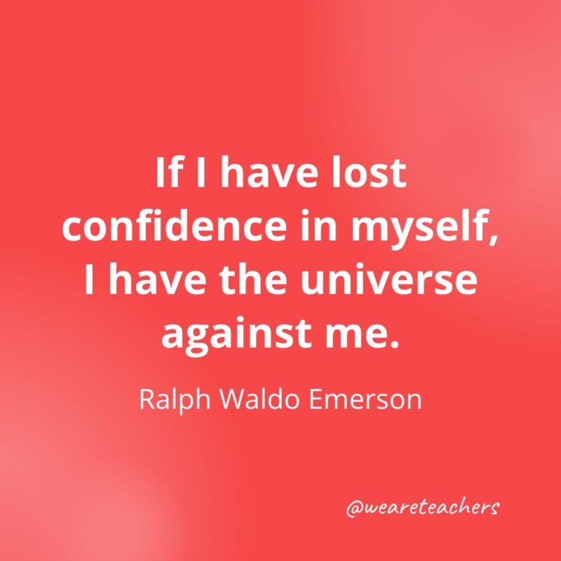 If I have lost confidence in myself, I have the universe against me. —Ralph Waldo Emerson