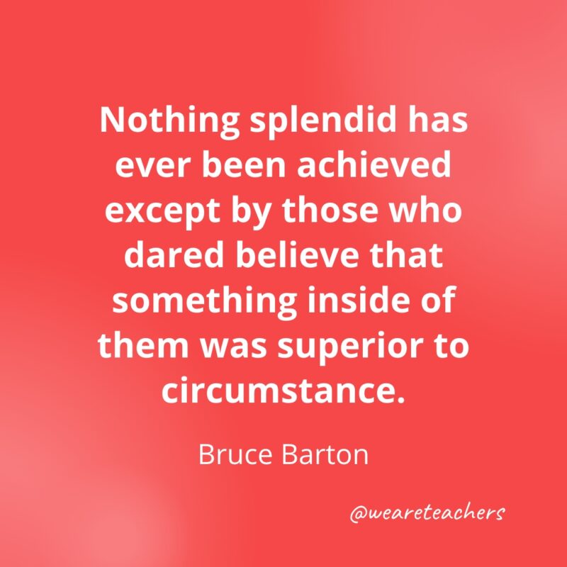 Nothing splendid has ever been achieved except by those who dared believe that something inside of them was superior to circumstance. —Bruce Barton