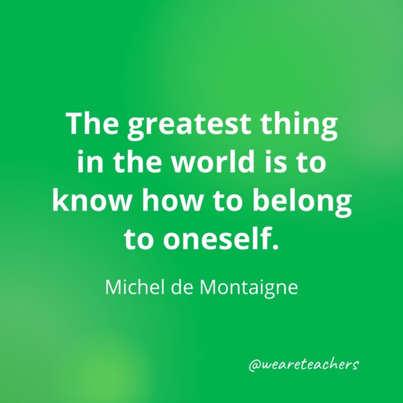 The greatest thing in the world is to know how to belong to oneself. —Michel de Montaigne