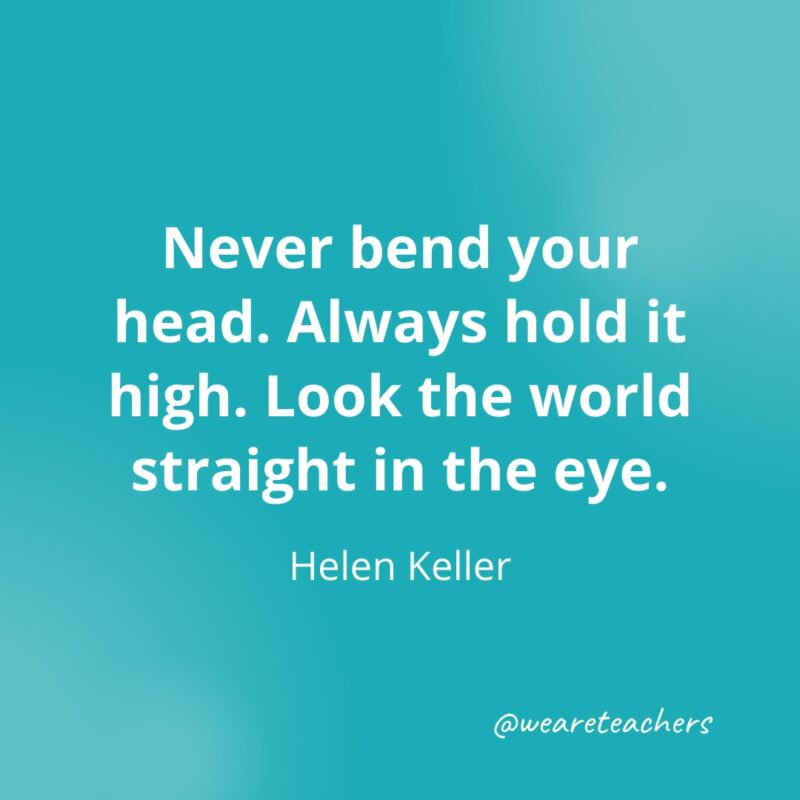 Never bend your head. Always hold it high. Look the world straight in the eye. —Helen Keller
