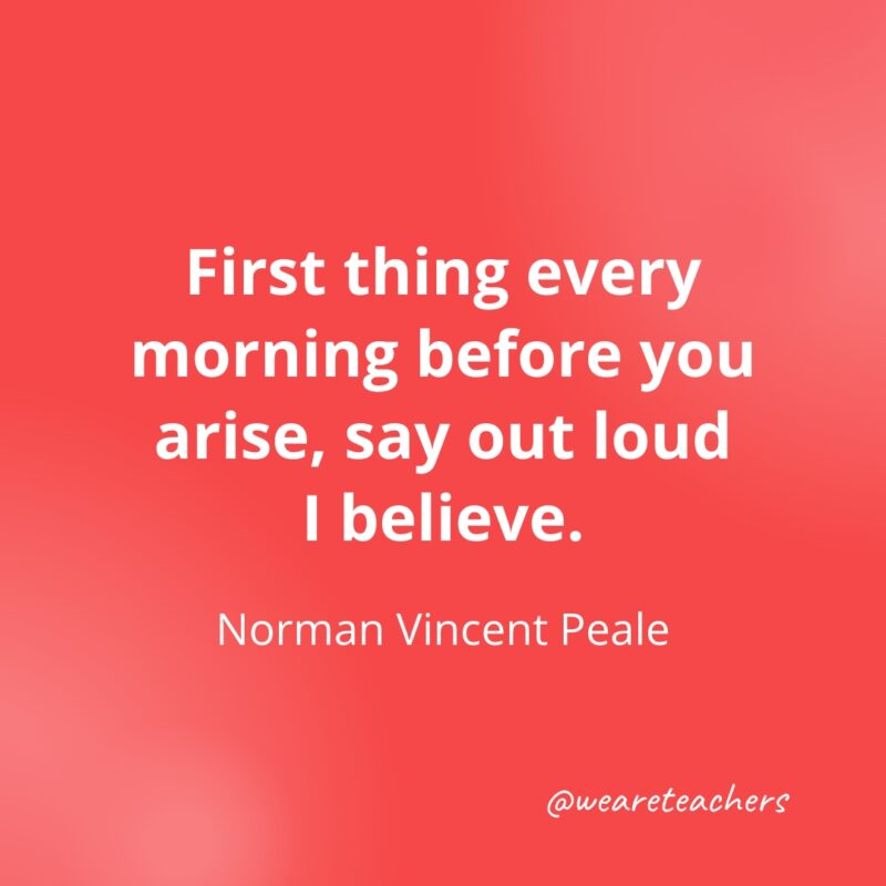 First thing every morning before you arise, say out loud, I believe. —Norman Vincent Peale