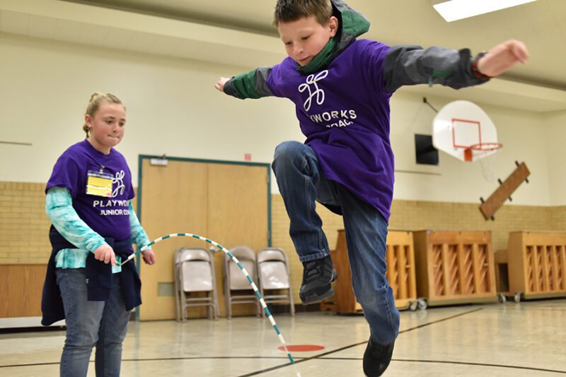 Recess games that involve jump ropes are some of our favorites! Using one or two jump ropes, kids jump once, twice, three times (and so on) when it’s their turn. Once they have the hang of it, you can add complexity by requiring kids to do tricks as they jump.