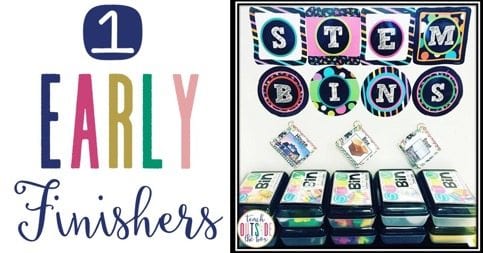Ironically, although STEM bins provide an outlet for early finishers, they also serve as a potential reward for students to finish their work in the first place! Additionally, many students with behavioral issues will be more motivated to make good choices if they know they will get to “play” with LEGO or Dixie cups.