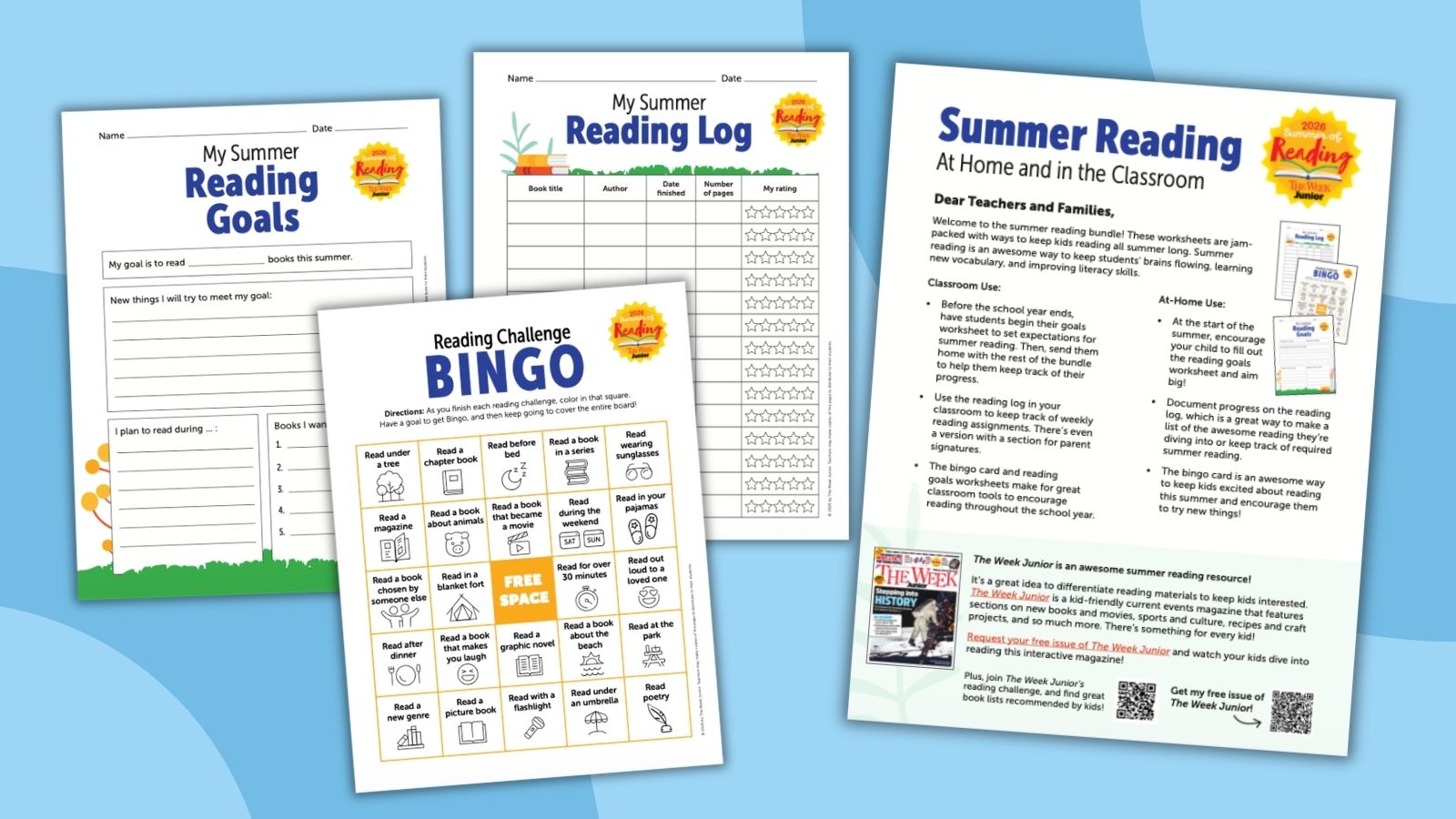 Summer reading is one of the most effective ways to help kids retain knowledge and continue building skills outside the classroom. It supports vocabulary growth, reading stamina, and literacy development, all while helping kids become lifelong readers. Together with The Week Junior, we’ve created a bundle that includes a summer reading log, bingo challenge, and goals worksheet that are great tools to keep kids reading both inside the classroom and at home.