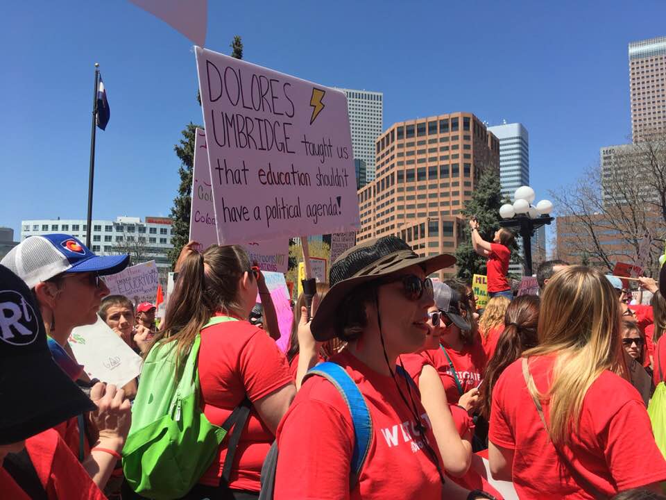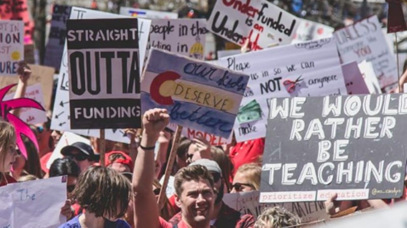 Last week tens of thousands of teachers and their supporters gathered for huge rallies in Colorado and Arizona. As teachers marched to their state capitols to advocate for increased funding for education, spirits were high and teachers were definitely using their outside voices! Decked out in a sea of red, teachers displayed poignant, clever, truth-telling teacher protest signs. Here are some of our favorites.