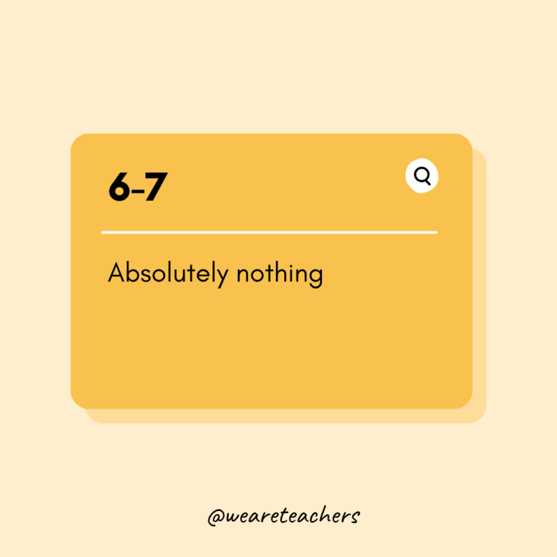 Absolutely nothing. It originated from the song “Doot Doot (6 7)” by Skrilla which then got edited to include video edits of NBA player LaMelo Ball, who is 6 feet 7 inches tall. However, we like how teacher Kathy Behrend chose to use it in her classroom (in response to someone asking what the kids mean when they say 6 7):
