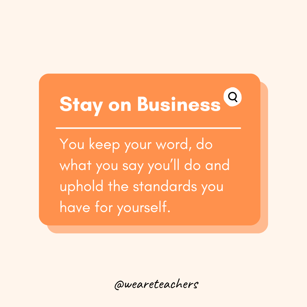 You keep your word, do what you say you’ll do and uphold the standards you have for yourself.