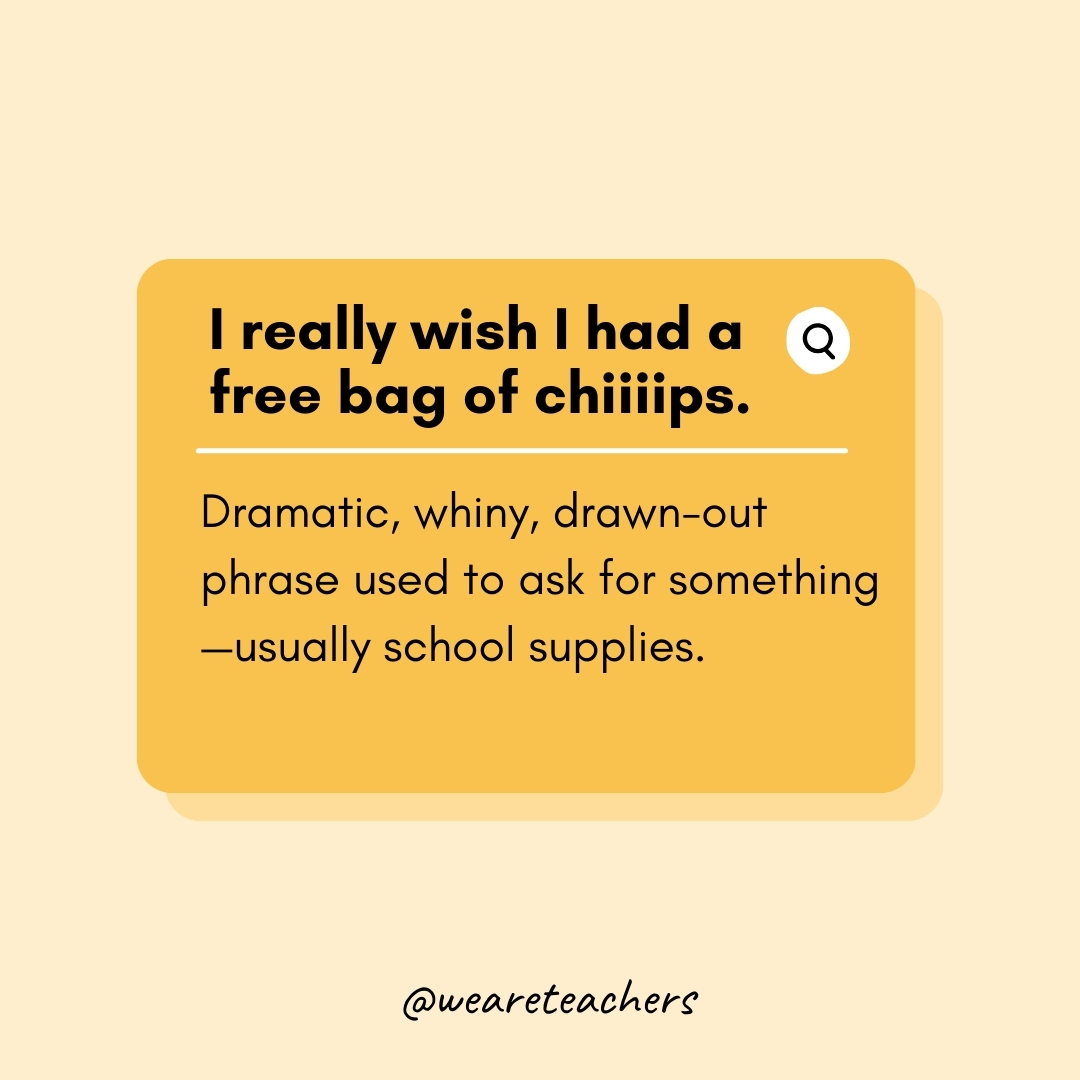 It comes from a meme where someone complains, “I wish I could get a free bag of chiiiips,” in an exaggerated sing-song voice.