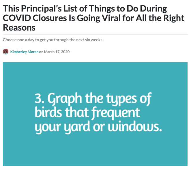 When we first entered quarantine, this article was a big hit among teachers and parents alike.