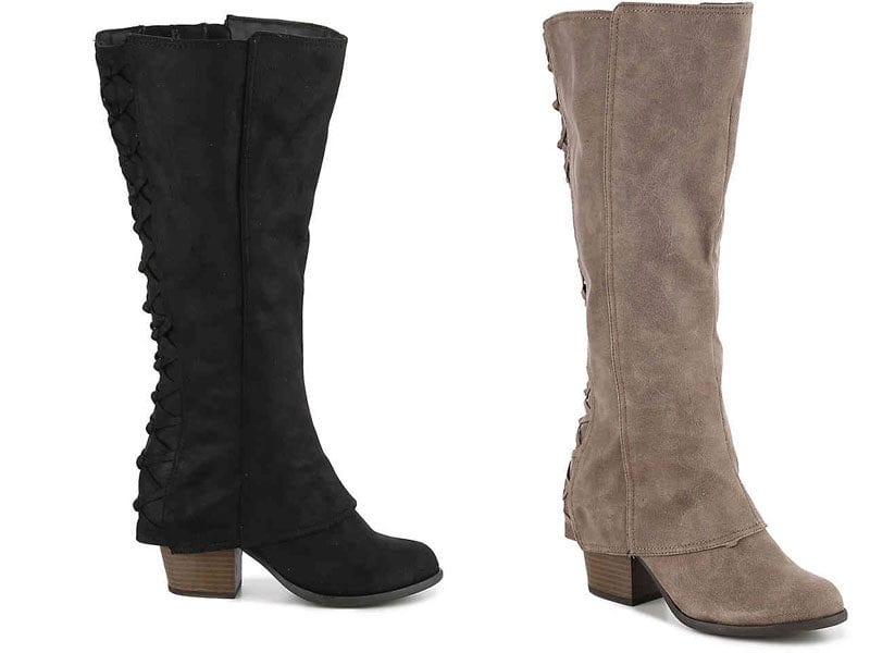 If the ever-classy combo of tunic, tights, and boots is your go-to outfit, why not spice up your boots a bit? These suede boots look cute from any angleâeven the back!Â