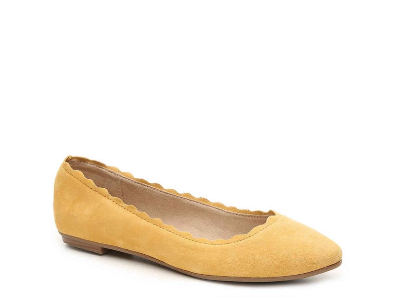 Yellow is often described as a happy color, and as soon as you shift to a yellow mustard shoe, you are totally in fall territory. We especially love the scalloped edge of these shoes.Â