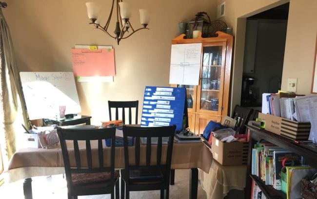 At Jennifer’s K.’s house, they’ve got one 5th grade teacher, one 6th grader, and one high school freshman. There’s a lot of learning going on there.