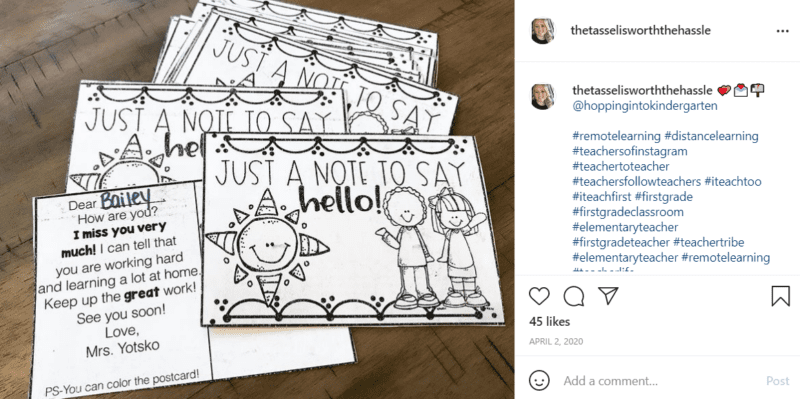 Lisa S. rounded up everything she could before her school shut down. “I grabbed the whiteboard, poster paper, and four bags of stuff including read alouds, teacher’s manuals, and student supplies. Just in case!” Way to think ahead, Lisa!